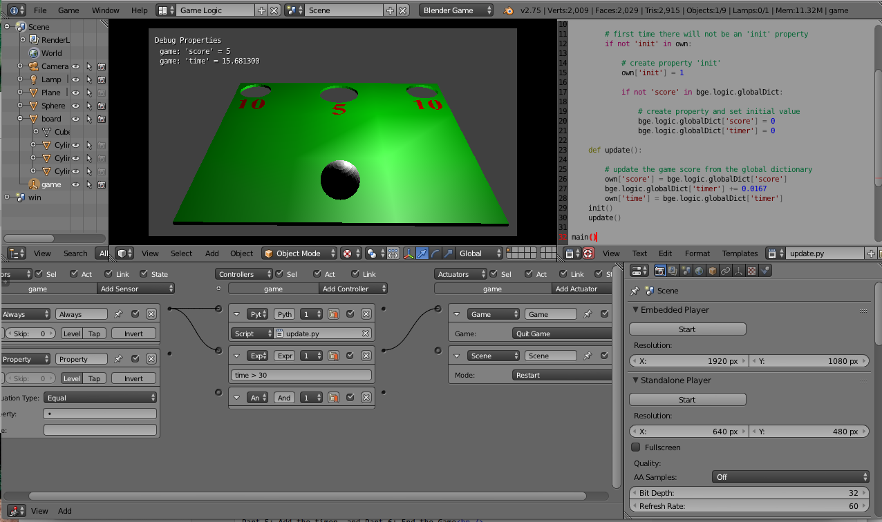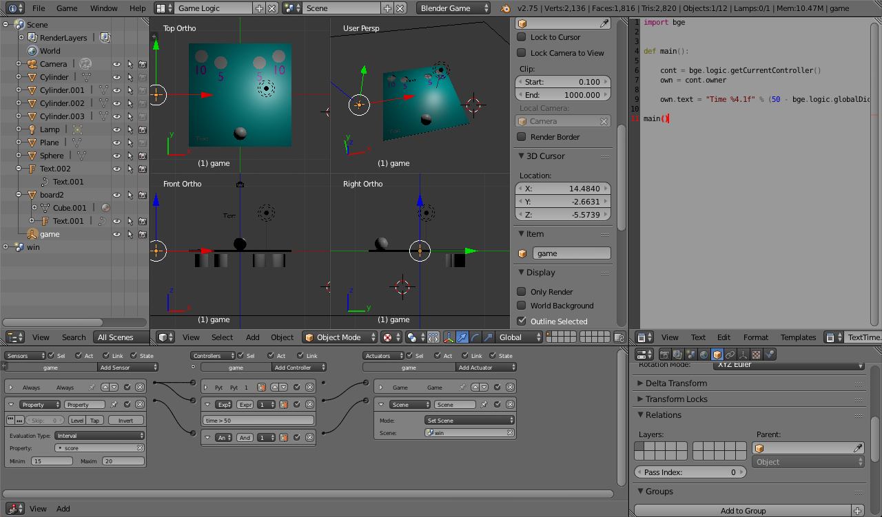 To get started creating a game, set the render engine to "Blender Game":![]() |